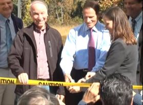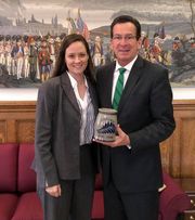 Photo 1: Melissa spend many hours in Hartford speaking on behalf of Haddam residents, notably for the Education Cost Sharing allocations. Photo 2: Presenting a Haddam jar to Governor Dannel Malloy. Photo 3: She was instrumental in securing funding to remove hazardous waste from Higganum Cove. Representative Joe Courtney and Senator Richard Blumenthal at ribbon cutting ceremony in 2015.