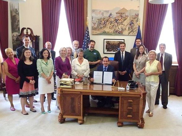 Photo 1: Melissa speaking at a community meeting against the swap. Photo 2: She led many rallies at Eagle Landing State Park. Photo 3: Melissa, third in from right, stands with others as Governor Dannel Malloy signed the bill to Stop the Swap! The bill would eventually be approved by voters to change the state constitution. It now requires that before land is transferred: 1. A public hearing on bills to authorize the transfer, sale, or disposal of state owned properties such as state parks, forest, conserved lands, to non-state entities; and 2. It requires a two-thirds vote of the Connecticut General Assembly to authorize the transfer, sale, or disposal of land under the control of the state agriculture or environmental protection departments. Thank you, M!